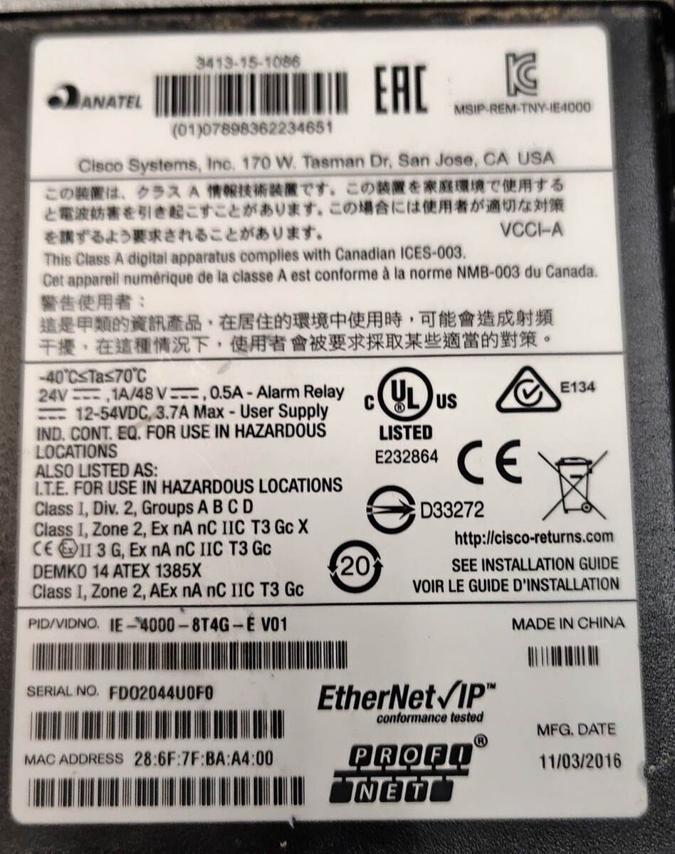 SEO Keywords: Cisco IE4000, IE-4000-8T4G-E, Industrial Ethernet Switch,