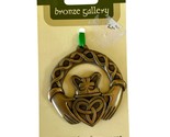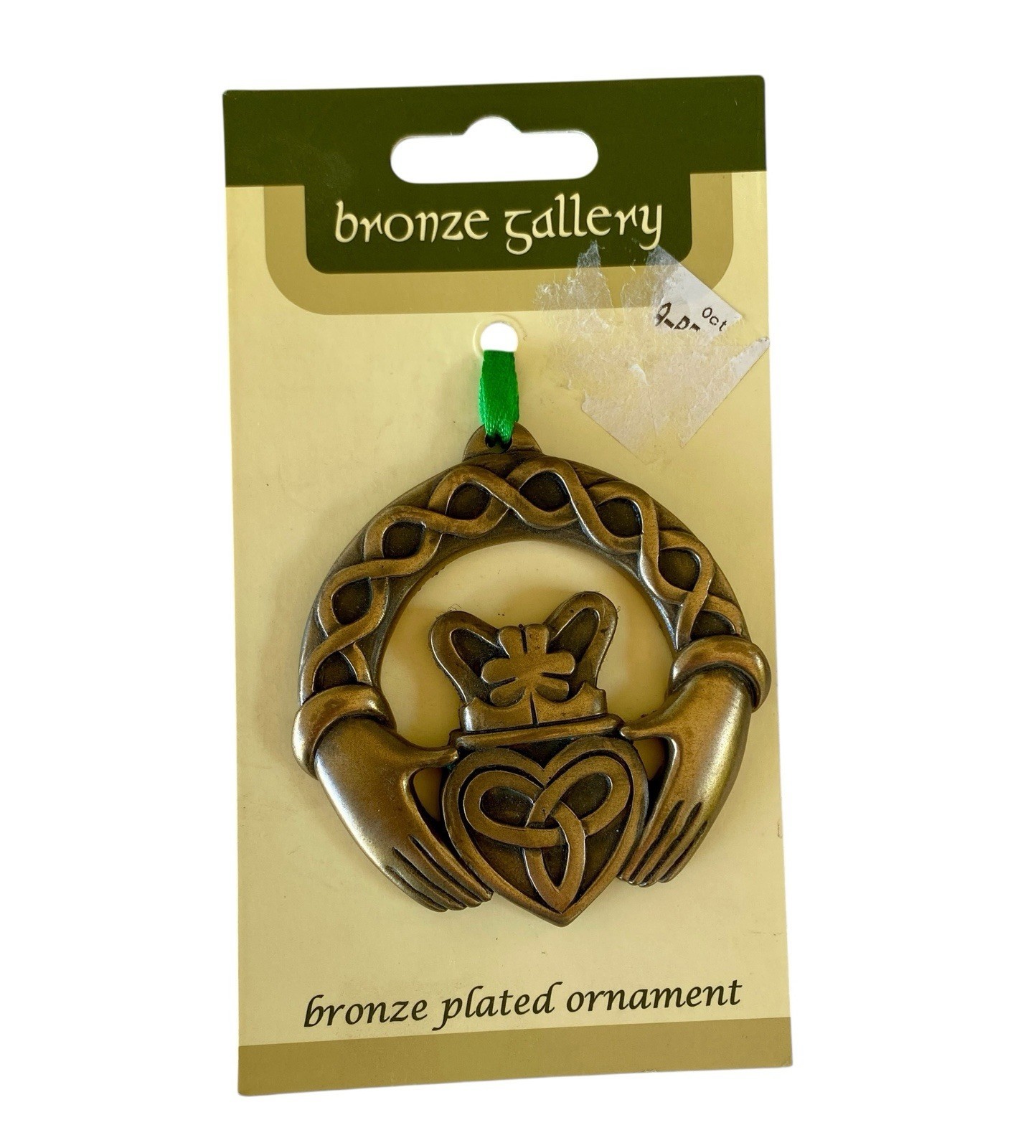 Claddagh Ring Bronze Plated Ornament Green Ribbon New 3”