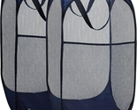 Collapsible Mesh Pop up Hamper Laundry Basket with Side Pocket (Blue | 2-Pack)