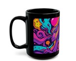 Elevate your morning routine with this vibrant and mesmerizing mug! Featuring a captivating psychedelic design, it will add a burst of energy and creativity to your day. The bold swirls of purple, pink, orange, and turquoise hues dance across the black ceramic surface, creating a visually striking piece. Whether you're sipping your favorite hot beverage or using it as a quirky desk accessory, this mug is sure to be a conversation starter. Crafted with high-quality materials, it's both durable and easy to clean. Embrace the groovy vibes and let this mug inspire your artistic side. Available in 11oz and 15oz sizes to suit your preference.