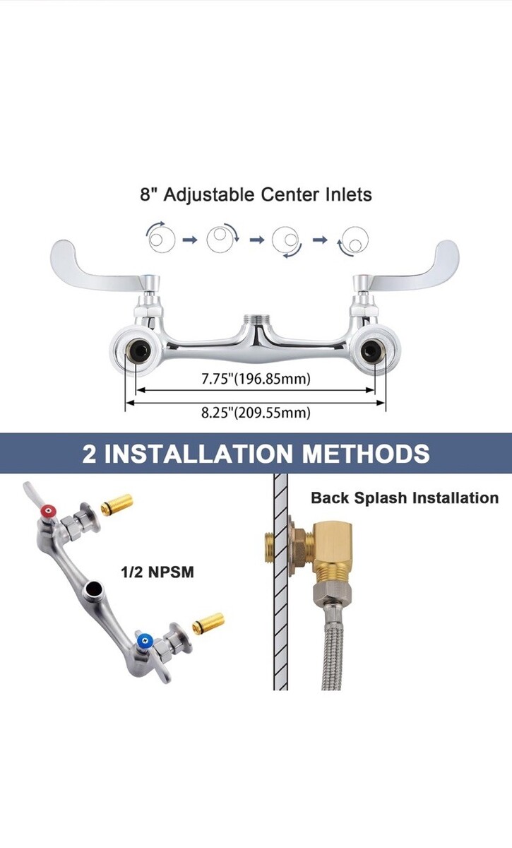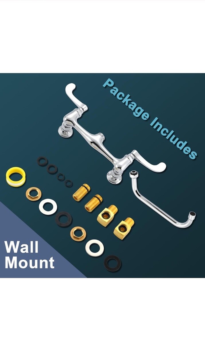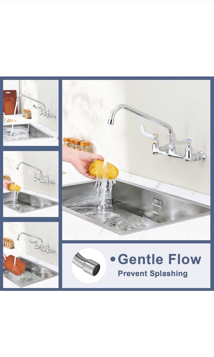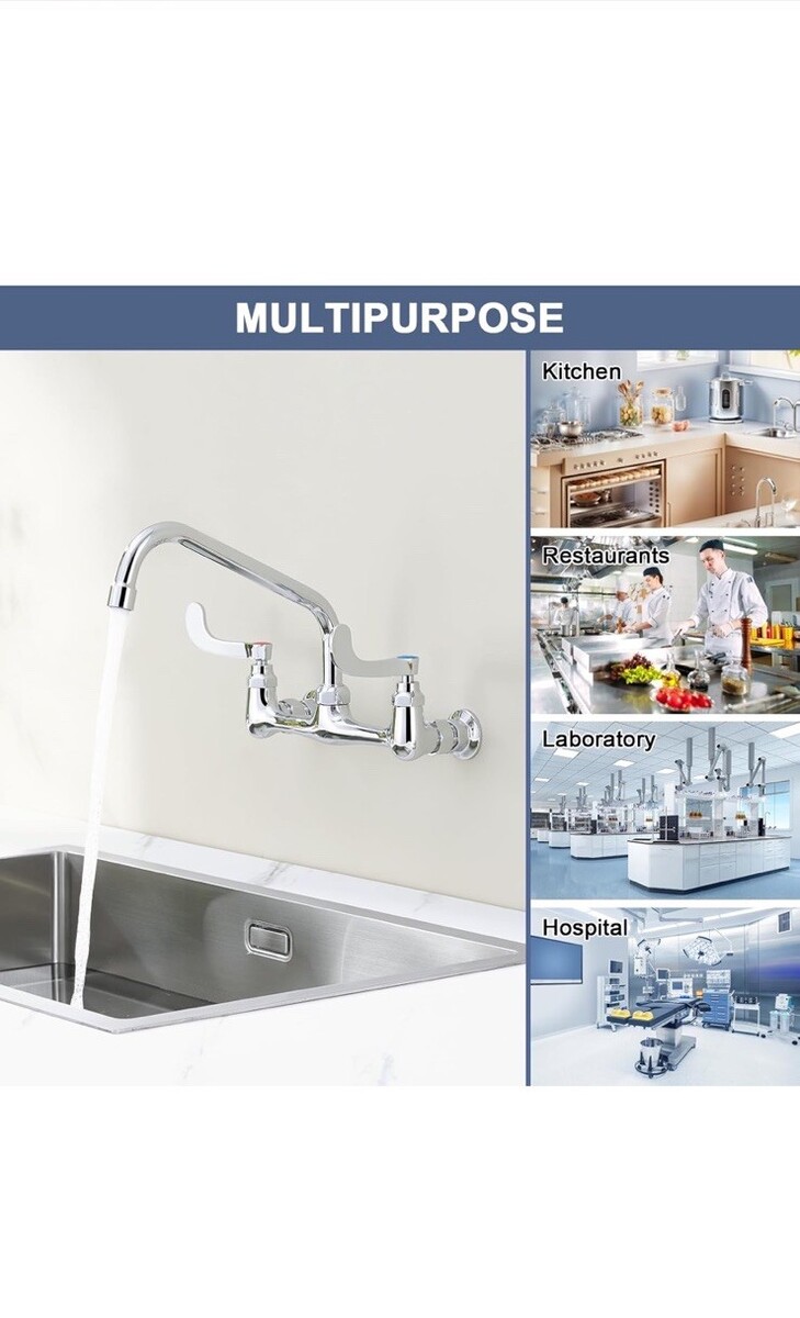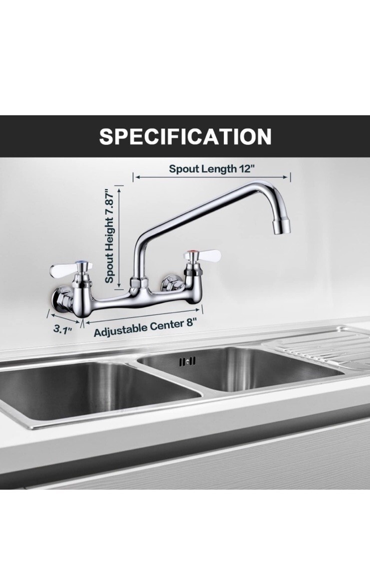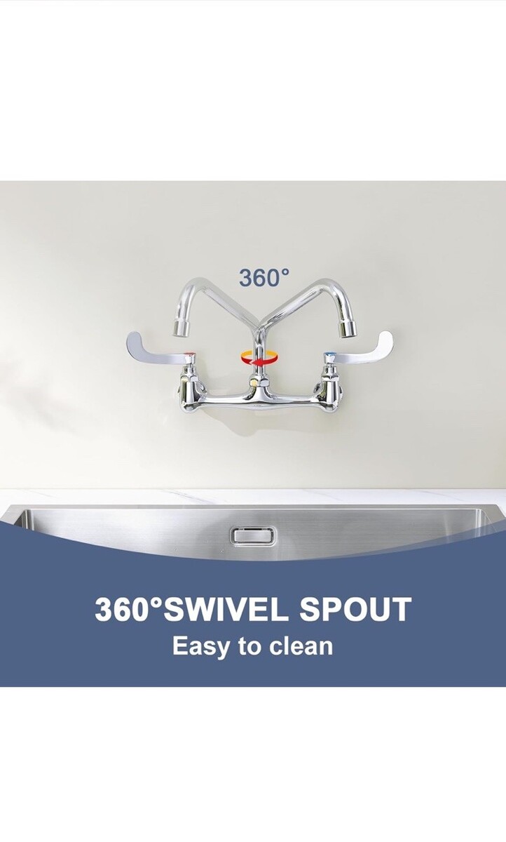 - Commercial Sink Faucet Swivel Spout 12” Center Wall Mount Kitchen Faucet Chrome