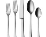 The set comprises of TWELVE each: dinner fork (3340012, 200mm), a long dinner knife (3340015, 220mm), a desert spoon (3340021, 185mm), a lunch or starter fork (3340022, 185mm) and a large teaspoon (3340031, 165mm). It is made from stainless steel with a matte finish and suitable for a dishwasher.