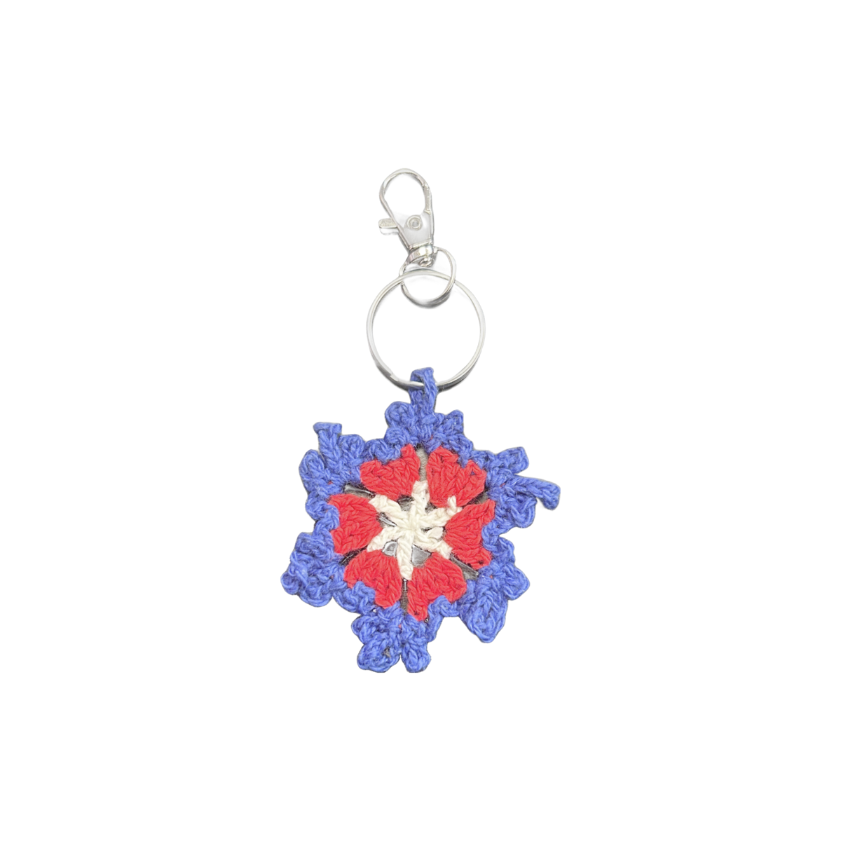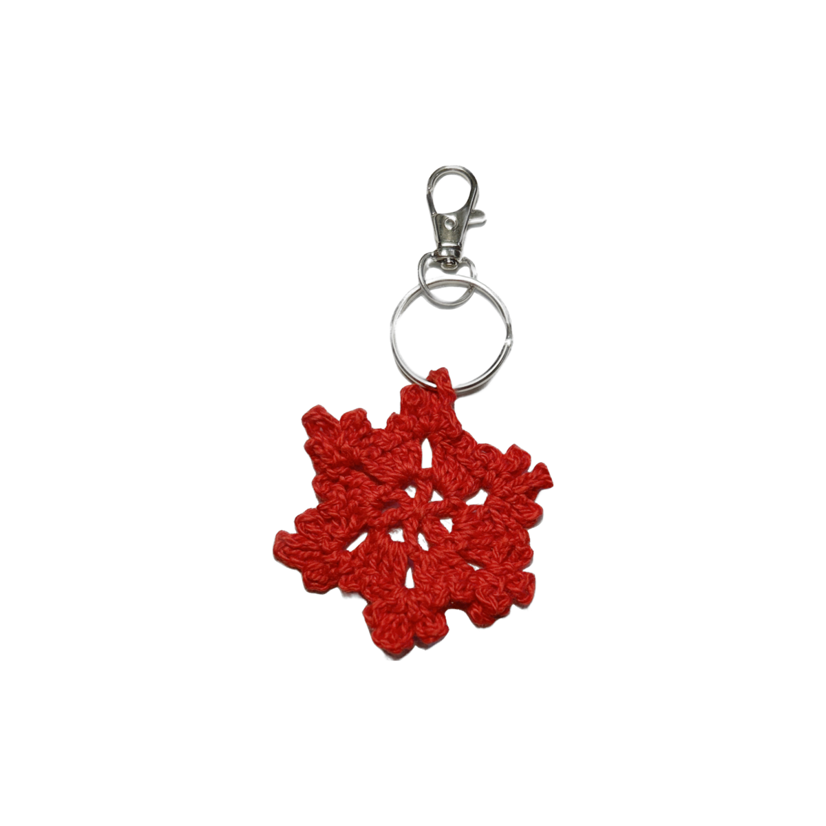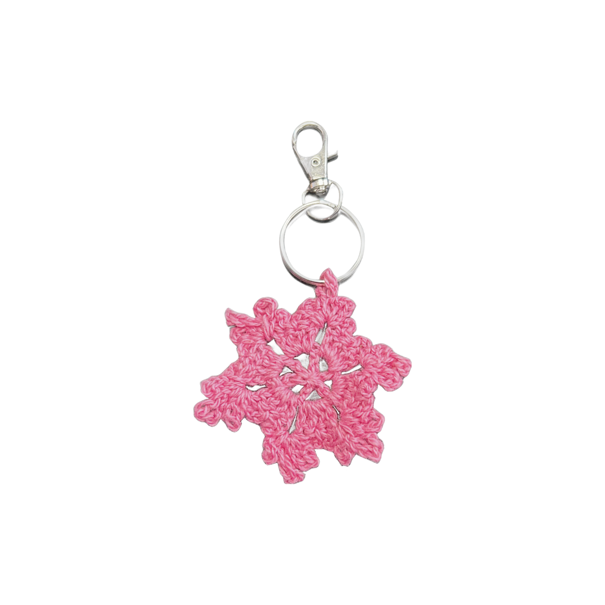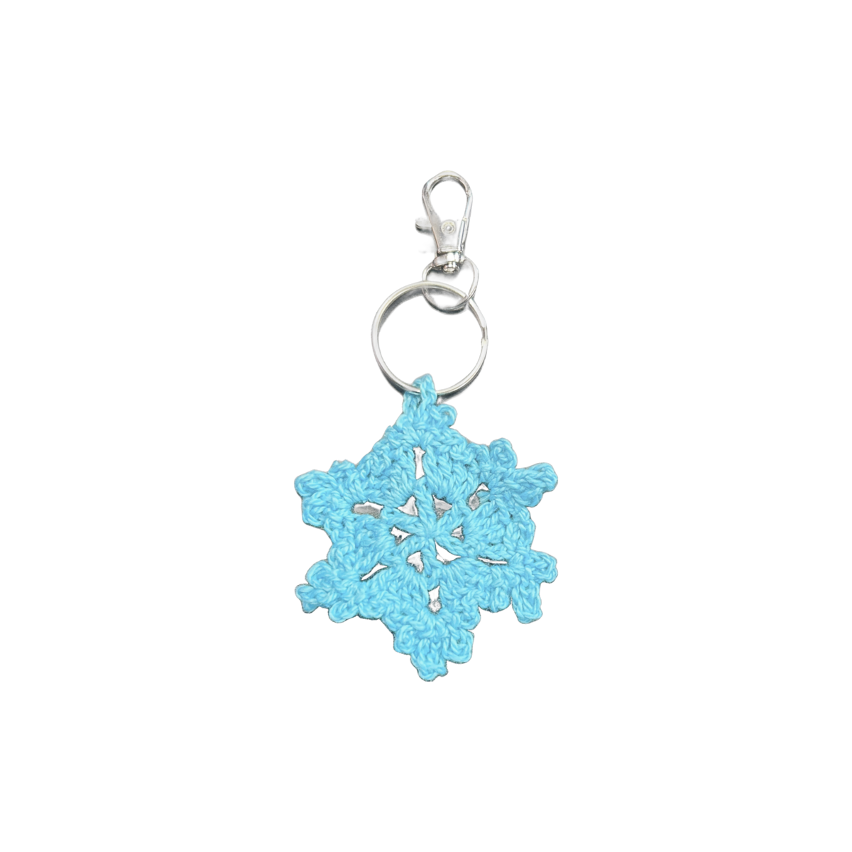 This snowflake keychain features a stylish crochet design, combining charm and functionality in one compact accessory. Perfect for adding a touch of elegance to your keys or bag.