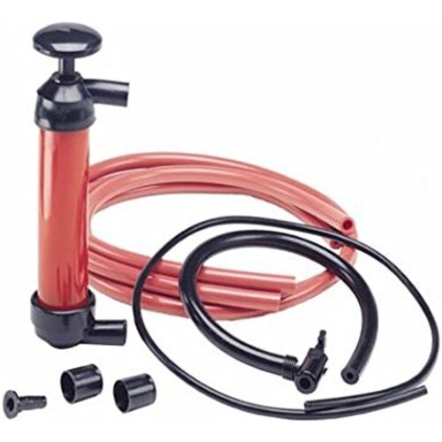 Transfer fluids with this Shop Craft Multi-Use Pump by Custom Accessories. This easy to use manual siphon pump safely takes the mess out of suctioning most fluids. Easy to operate with the pump action plunger at top of unit. Also perfect for low pressure air inflation. All hardware included