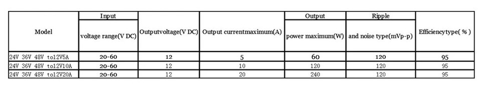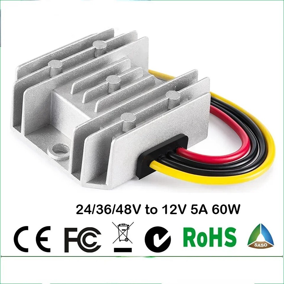 - DC 24V/36V/48V to 12V DC Converter 5A-20A Car Step Down Reducer Regulator 20-60V