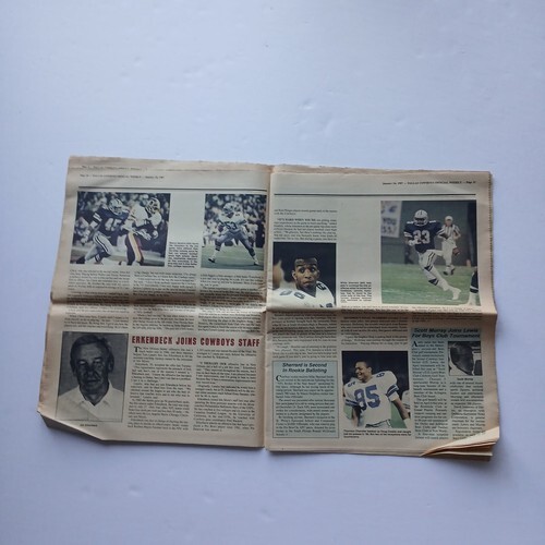 Dallas Cowboys This listing is for an original copy of The Official Dallas Cowboys Weekly Magazine. This is the January 24, 1987 Issue. This vintage newspaper style magazine features articles and stories about various players, coaches and team members. The newspaper is complete. It has minor to moderate wear and may have some tiny edge tears or tattering along the edge. There may be small pieces torn out along the edges of some pages or on the cover. The newspaper is creased in the middle where it has been folded. There may be some minor water damage or water stains to the cover or some pages. There are no missing pages and the pages are readable. There may be some yellowing of the pages due to age. As with all older newspapers, be careful when handling as some pages may be brittle. Please examine the pictures carefully if you have any concerns. Feel free to ask questions. This item ships USPS Ground Advantage. International buyers use international shipping program. This item will ship with a stiff cardboard backer to prevent bending or creasing by the mail carrier during shipping.