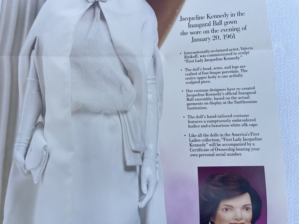 The Danbury Mint First Ladies Nancy Reagan doll is a beautifully crafted 18-inch collectible that comes in its original box with a Certificate of Authenticity. This original, non-vintage doll features brown straight hair, a medium complexion, and brown eyes. The doll comes with removable clothes and is part of the First Ladies series by Danbury Mint, making it a perfect addition to any collection or a special gift for adults aged 17 years and up who appreciate historical figures like Nancy Reagan.