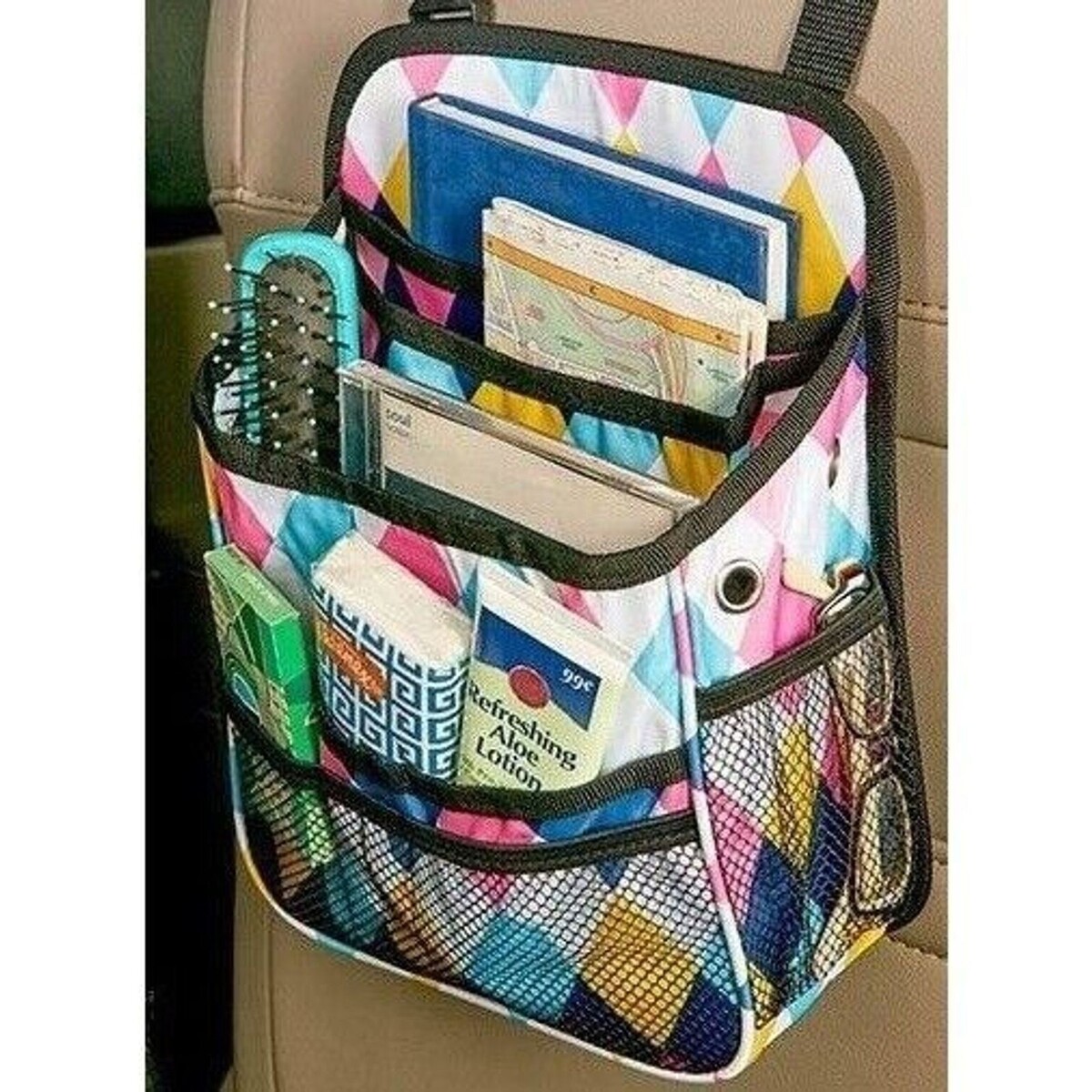 This Diamond Argyle Backseat Car Organizer helps clear your vehicle of clutter.
