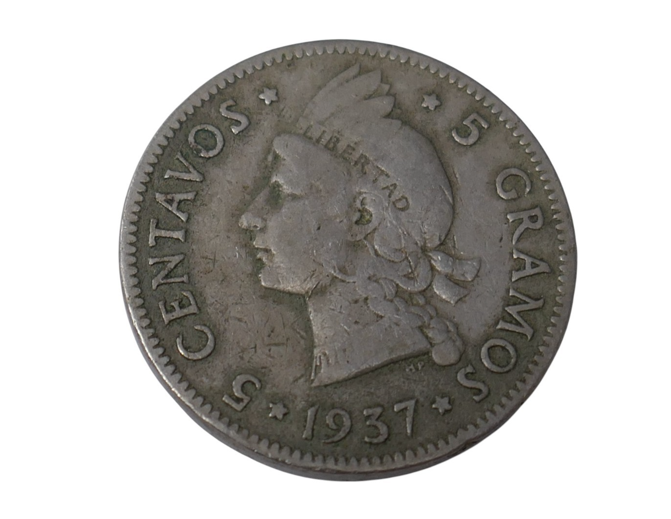 Dominican Republic 1937 Coat of Arms 5 Centavos Copper Nickel Coin