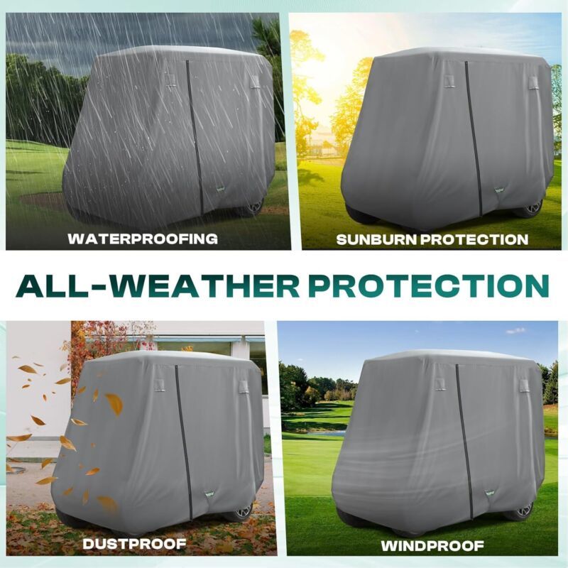 All-Weather Protection: Golf cart cover is designed with waterproof coating and UV-resistant coating in a multi-layer overlapping design, and the double-line stitching can better cope with the damage of snow, rain, frost, UV rays, dust, leaves, etc
