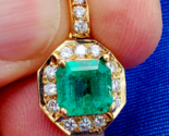 - Earth mined Colombian Emerald Diamond Pendant Deco Halo Solid 18k Gold Medallion