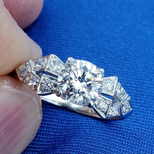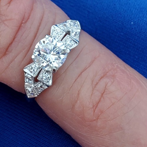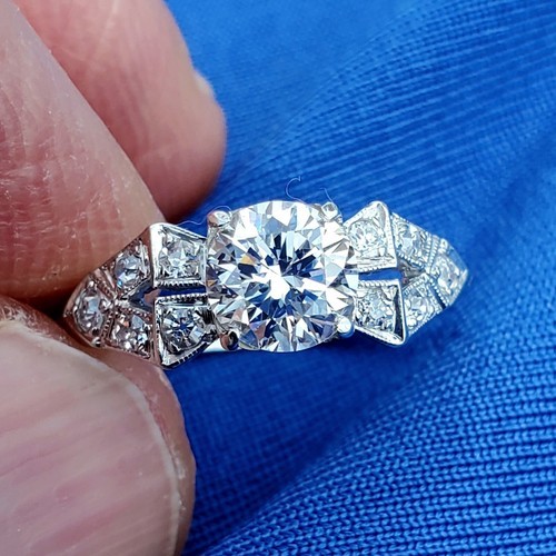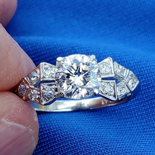Earth mined Diamond Deco Engagement Ring 1carat Vintage Solid Platinum Solitaire