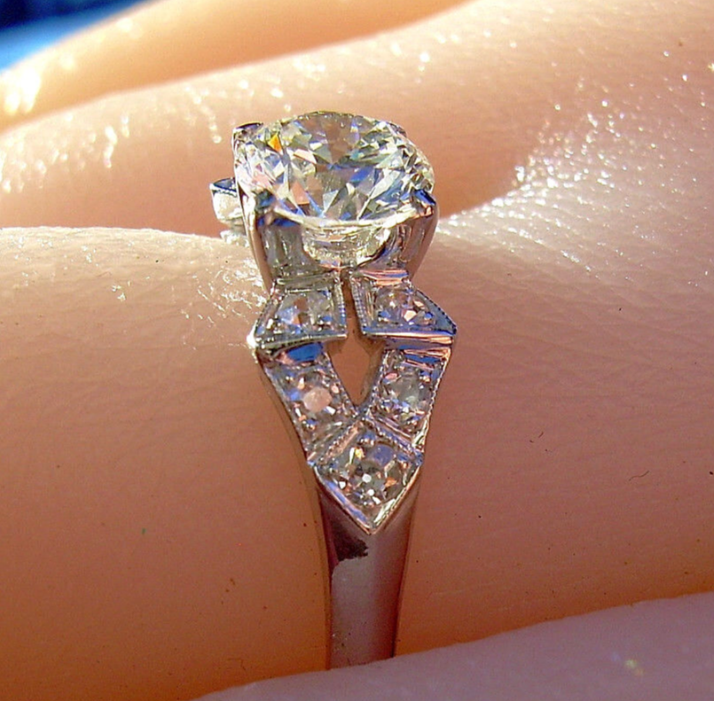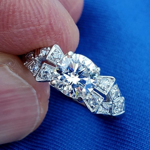 - Earth mined Diamond Deco Engagement Ring 1carat Vintage Solid Platinum Solitaire