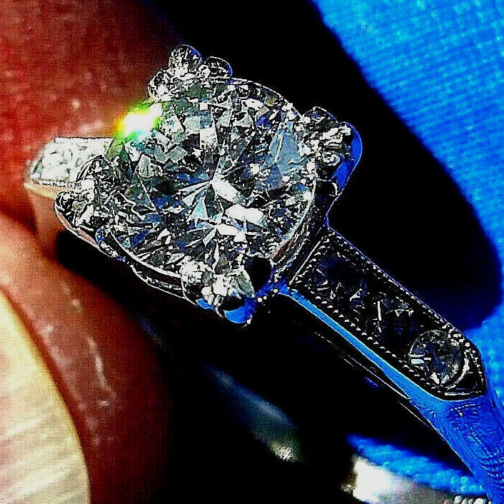 Earth-mined Diamond Deco Engagement Statement Ring Vintage Platinum Solitaire 6