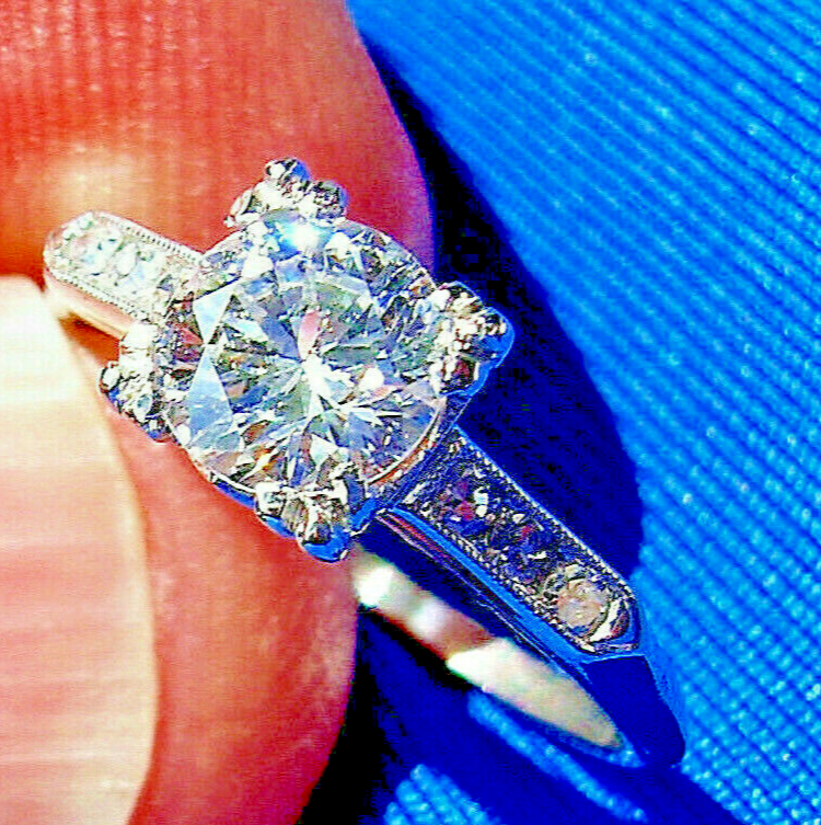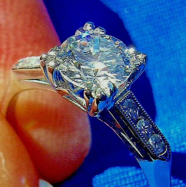- Earth-mined Diamond Deco Engagement Statement Ring Vintage Platinum Solitaire 6