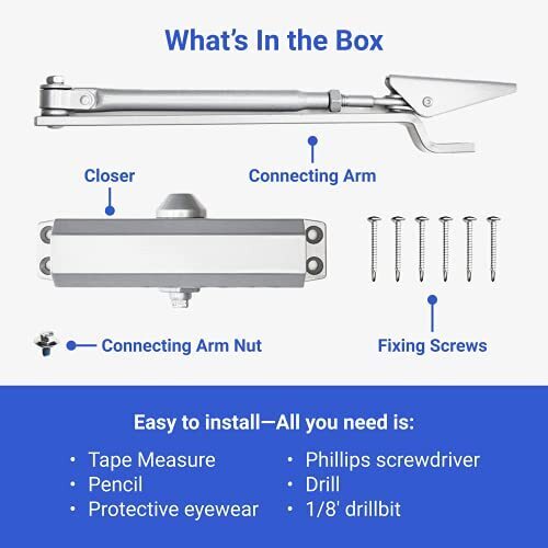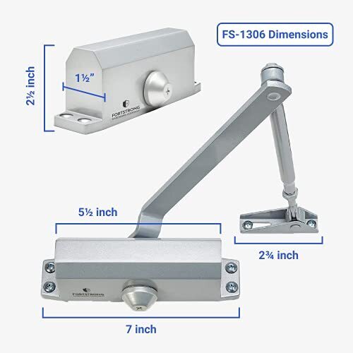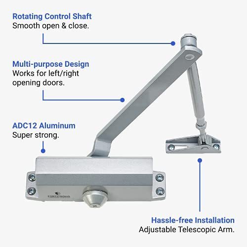 FORTSTRONG Automatic Door Closer - Adjustable, UL Listed, ADA Certified (Silver) PRODUCT DESCRIPTION The FORTSTRONG Door Closer is an automatic door closer suitable for both commercial and residential applications. It features an adjustable Grade 3 size spring and is UL Listed, ensuring compliance with safety standards. This model is also ADA Certified, making it accessible for individuals with disabilities. Its durable construction and reliable performance make it an ideal choice for high-traffic areas, offering smooth and secure door closing every time. FEATURES: * Automatic Operation: Ensures doors close automatically, enhancing security and energy efficiency. * Adjustable Spring: Allows customization of closing force to suit various door weights and usage requirements. * UL Listed: Meets rigorous safety standards, providing peace of mind regarding product quality and reliability. * ADA Certified: Complies with the Americans with Disabilities Act, ensuring accessibility for all users. * Durable Construction: Made from high-quality materials to withstand frequent use in both residential and commercial settings. Condition: Open Box Color: Silver Copyright All rights reserved.