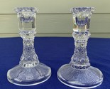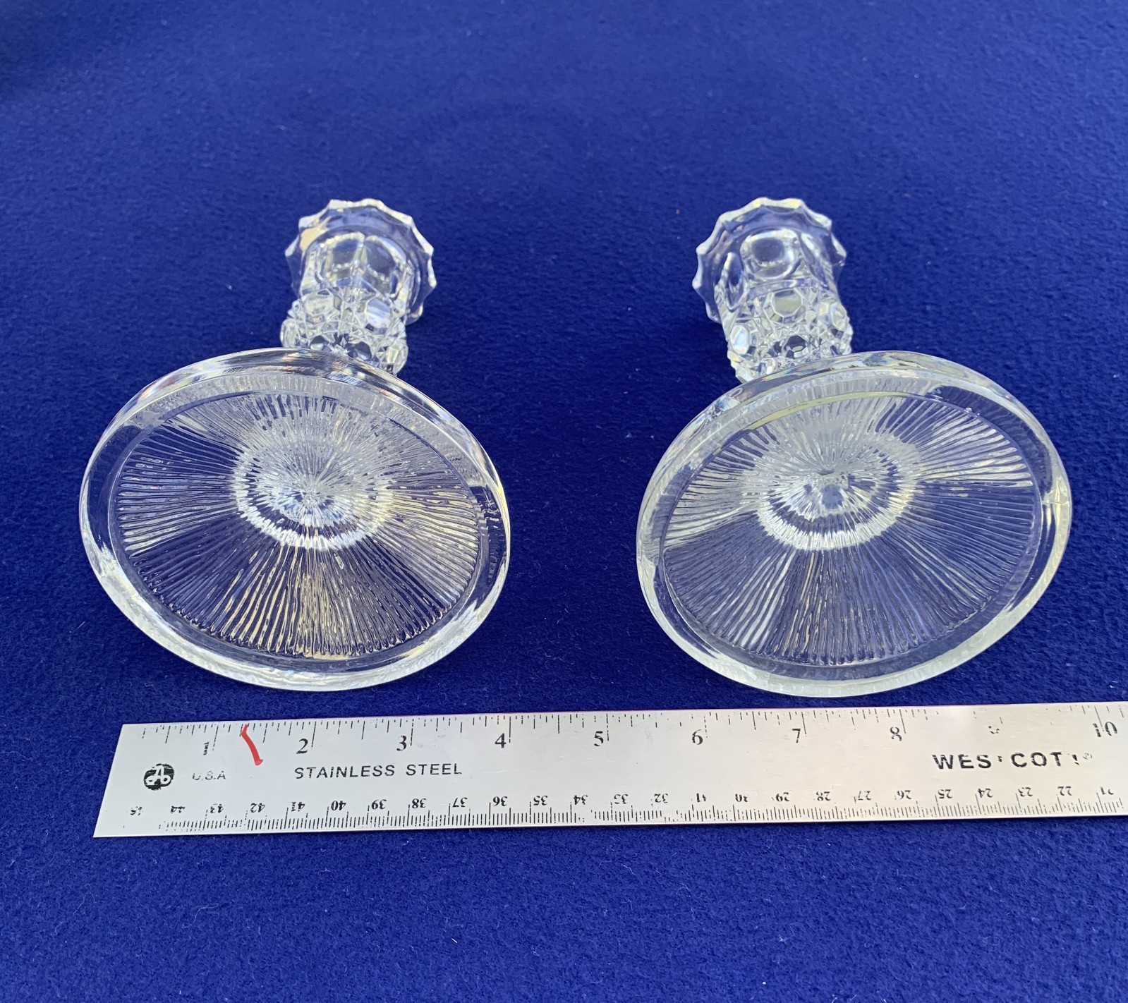 Vintage 1970's Federal Glass Windsor button cane clear glass pair of taper candle holders, 6" tall, no chips, scratches or sickness, see my other items in this pattern.