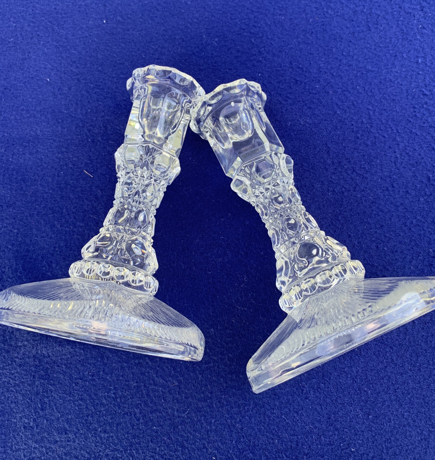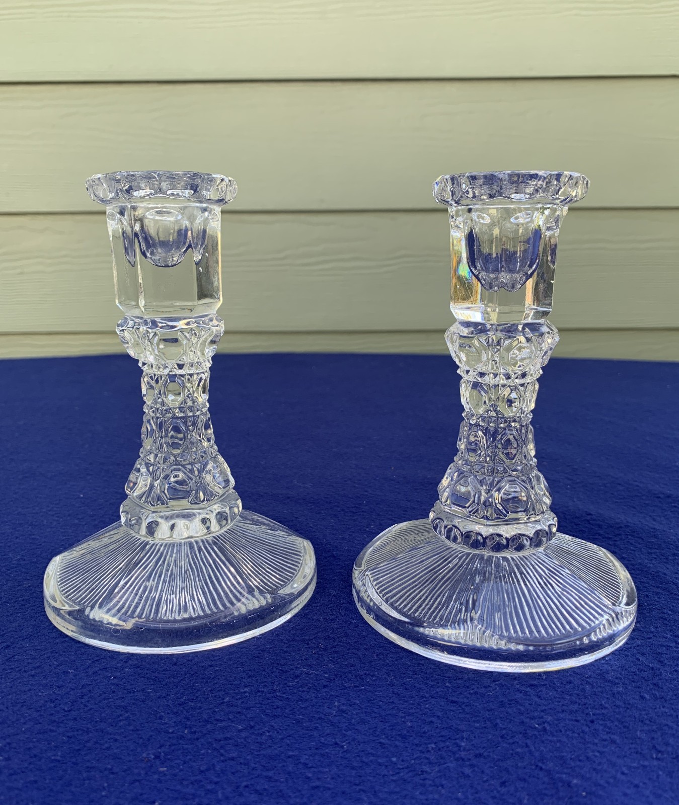Federal Glass Button & Cane Windsor rare, HTF clear cyrstal taper candle holders