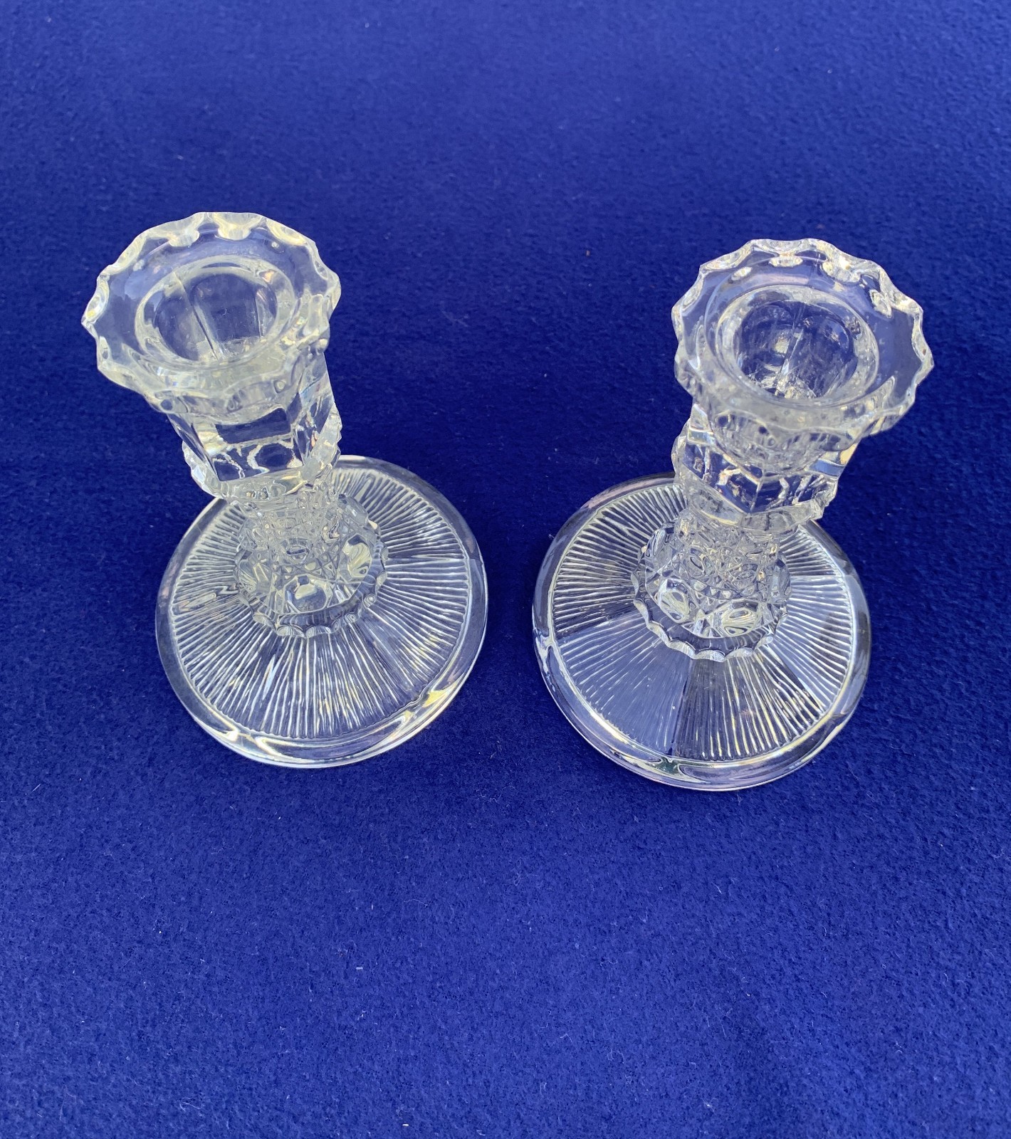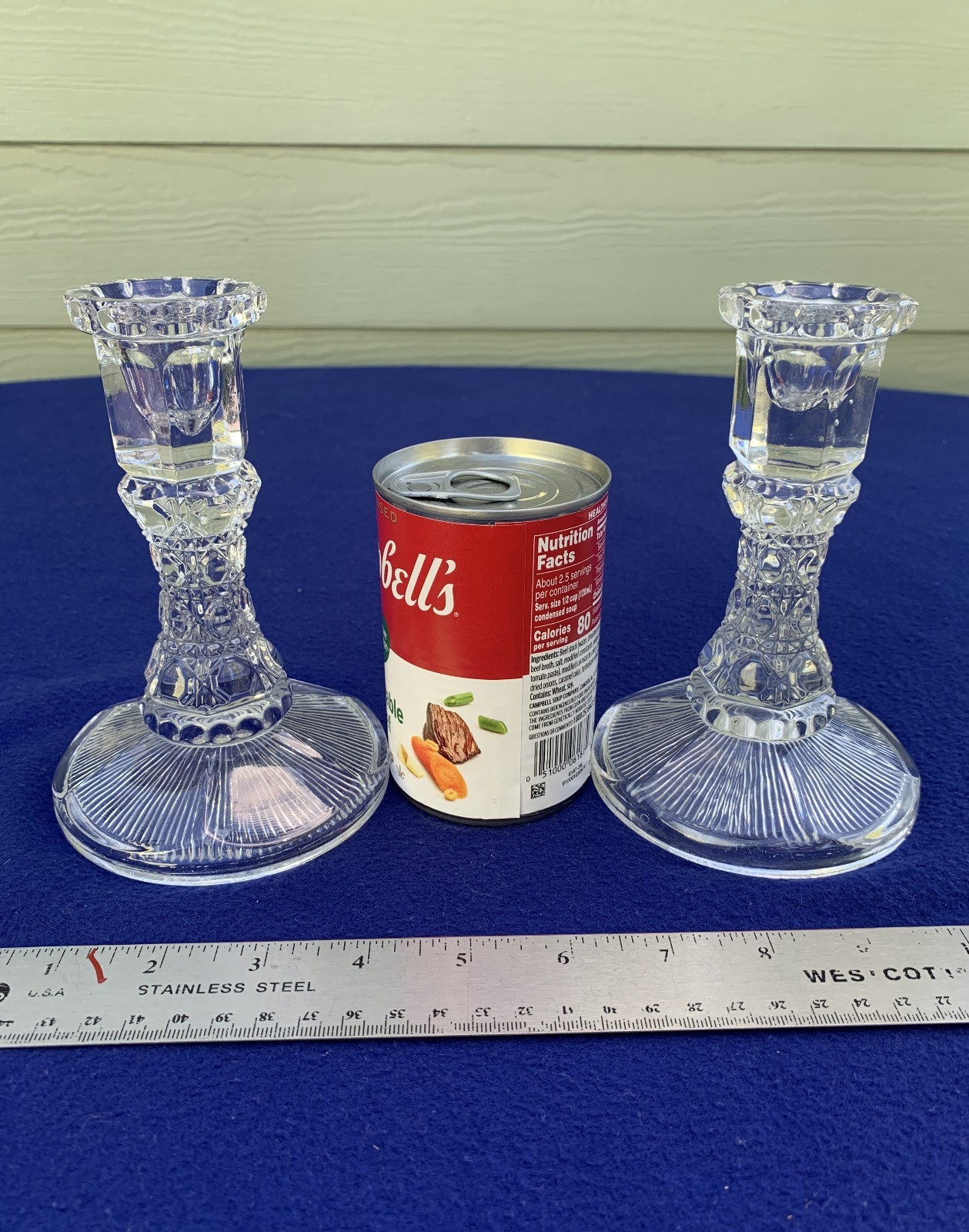 - Federal Glass Button & Cane Windsor rare, HTF clear cyrstal taper candle holders