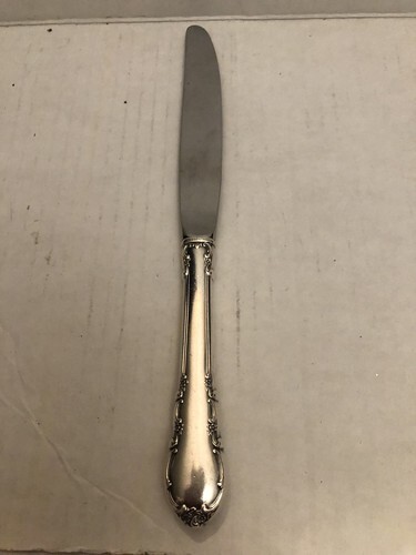 Sterling Silver hollow handle with stainless blade DINNER KNIFE MODERN 9 1/4" in the pattern FLEETWOOD BY MANCHESTER. It is NOT monogrammed and is in excellent condition.