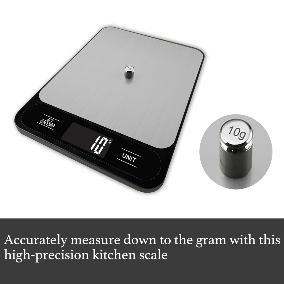 [High Precision Weighing]-This digital food scale precisely measures items with a maximum capacity of 11 lbs (5 kg) in 1-gram increments, ensuring accurate results for detailed recipes. Ideal for those who need a reliable gram scale for kitchen use.