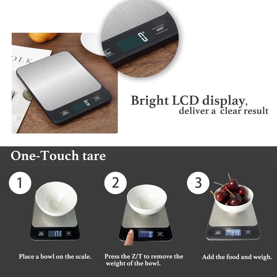 Food Scale,Digital Kitchen Scale,Weight in Grams and Ounces LCD Display,11lb