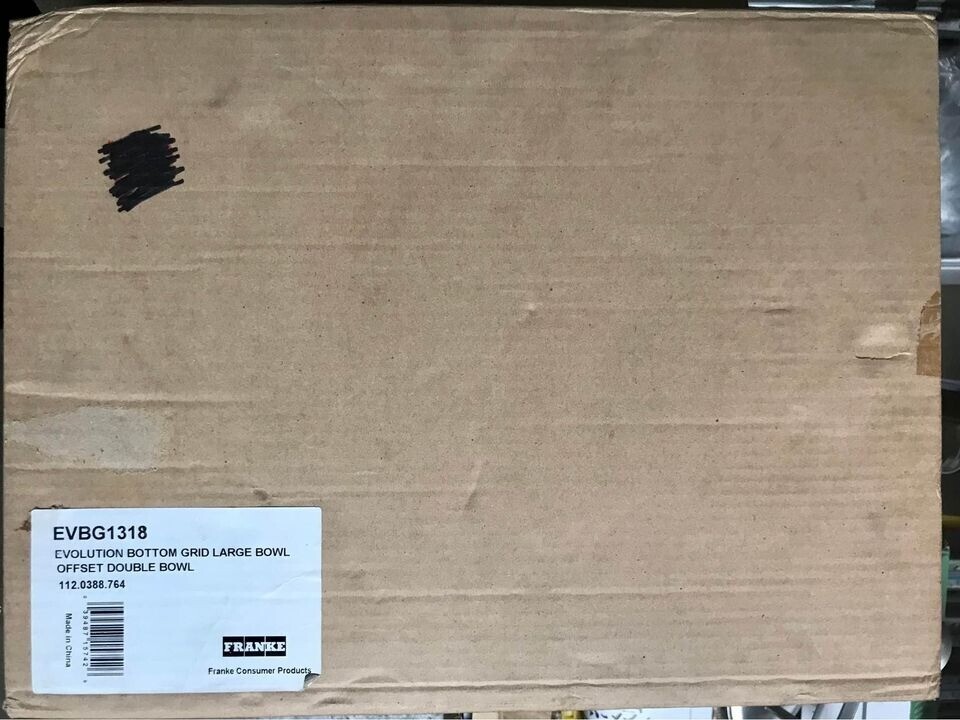 Franke EVBG1318 Evolution Stainless Steel Bottom Sink Grid for use with EVCAG901/EVCAG904, 13.1 x 18 Inches. Open box. Unused. Still in box. Box has some damage/dent