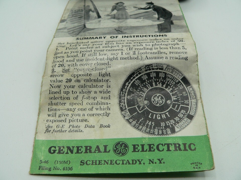 General Electric GE Exposure Meter Light Values Model 8DW58Y4 w/ original papers