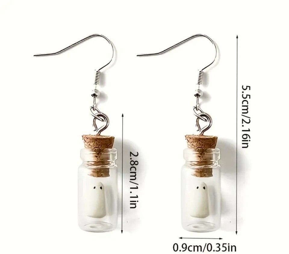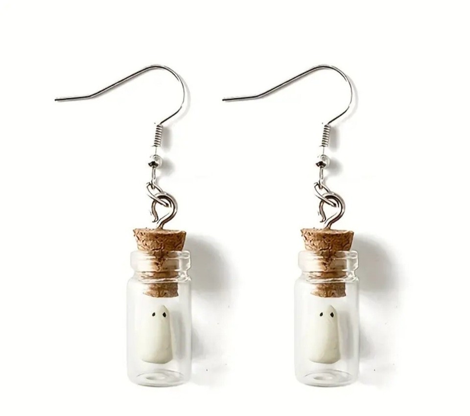 Glow In The Dark Ghost In A Bottle Earrings - Halloween Jewelry