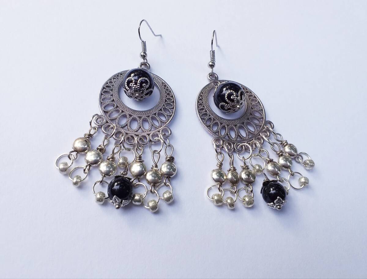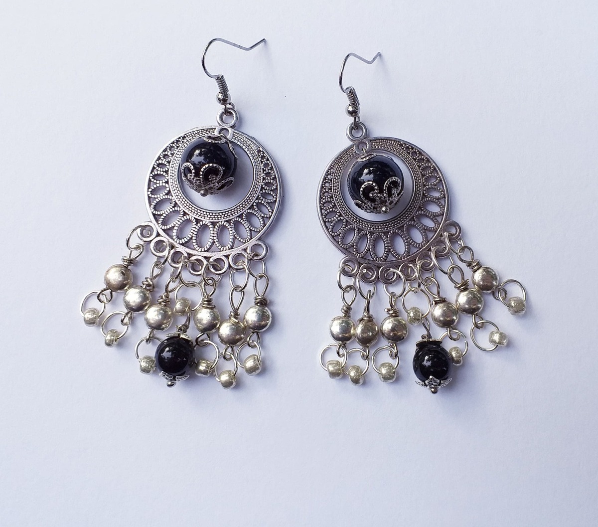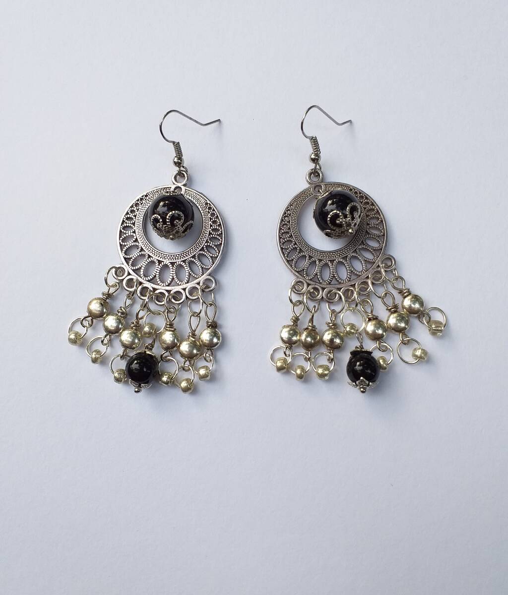 Gypsy earrings Silver earrings Black earrings Boho Earrings Bohemian Earrings Vi