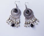 Victorian Black porcelain and Silver-toned filigree ornaments long earrings . Black and silver beautiful earrings. Gypsy silver black earrings.