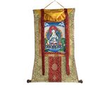 - HAND-PAINTED WHITE TARA TIBETAN THANGKA BUDDHIST GODDESS ART WITH SILK BROCADE