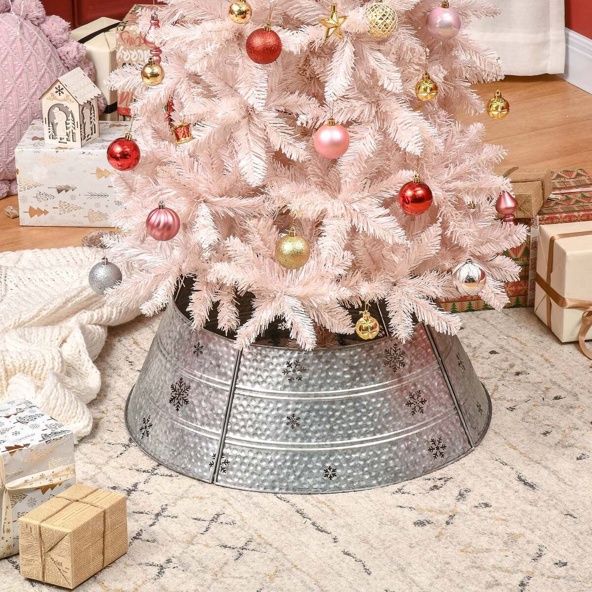- HOMCOM Bright Silver Steel Christmas Tree Collar Skirt Decoration