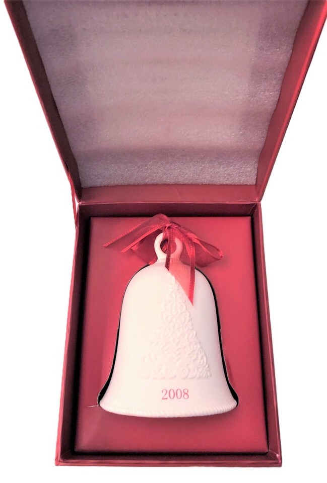 Primary image for Hallmark Porcelain Dated Bell 2008 Happy Holidays in Box Christmas Decorations