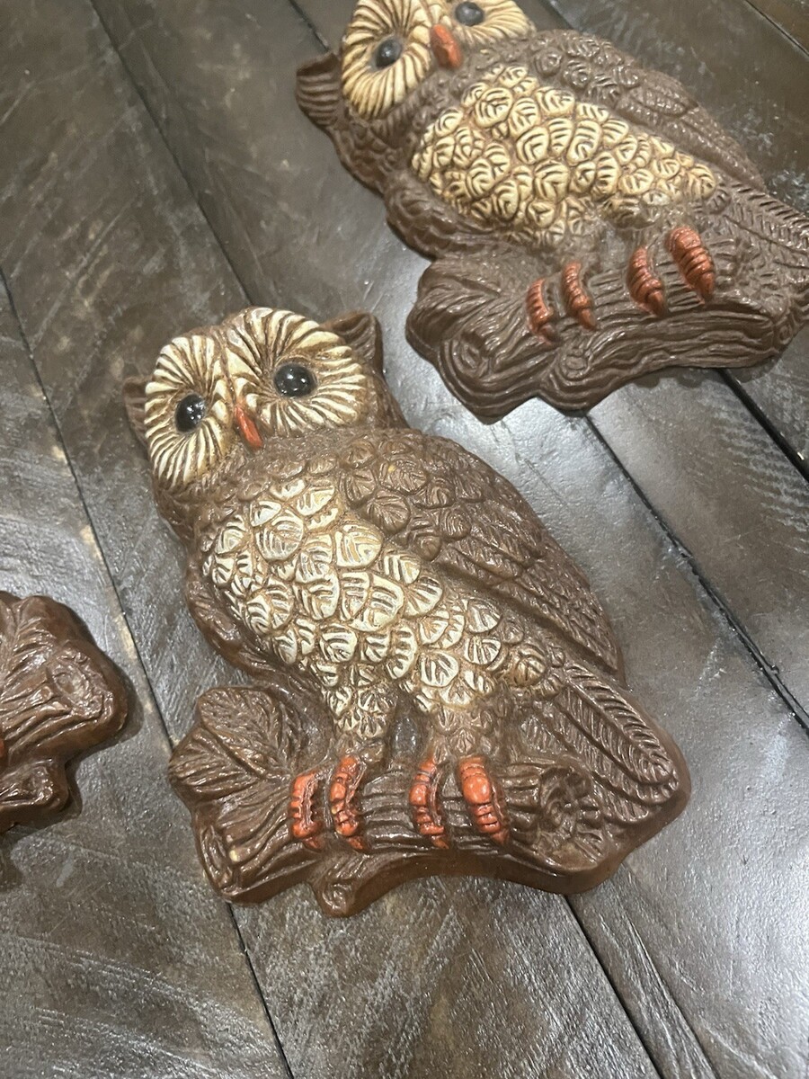 Homco Owls Wall Art Plaque Set of 3 Vintage Mid Century Modern Kitsche Retro