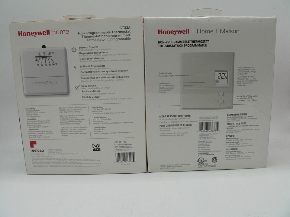 Primary image for Honeywell Home Thermostats RLV3150A1012, CT33A Thermostats (Lot of 2) open box