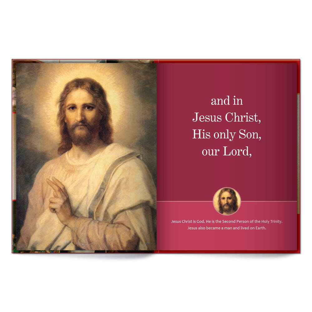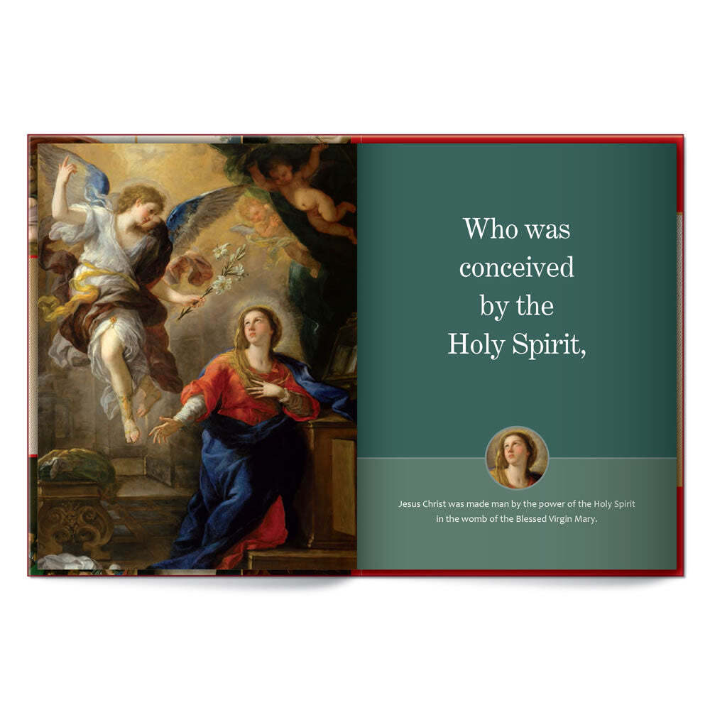 Through beautiful Sacred Art, this picture book will help Catholic children learn the Creed while seeing magnificent artwork. On each page, there is a phrase of the Creed with a short explanation of what it means at the bottom. Children can learn about the meaning of the words paired with incredible sacred art images!
