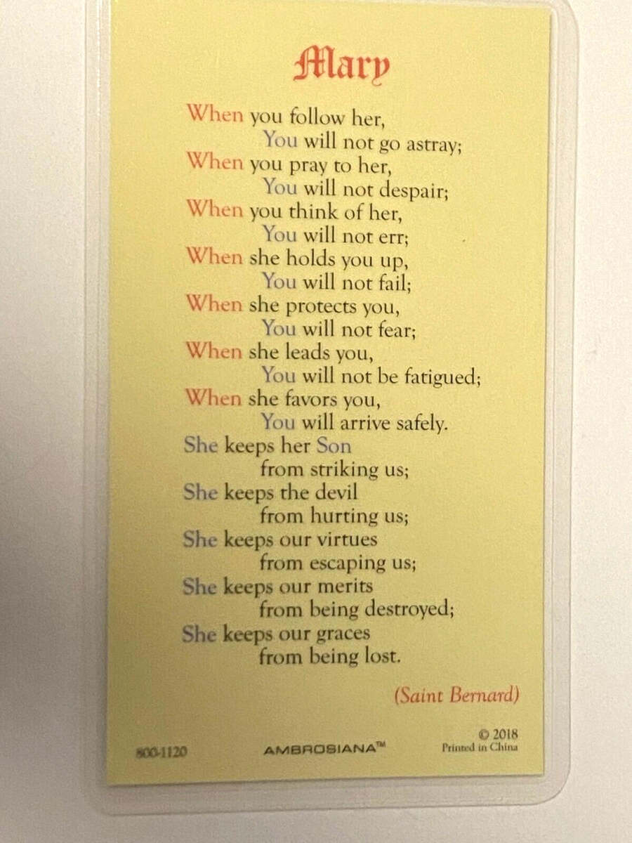 - Immaculate Heart of Mary Laminated Prayer Card, New