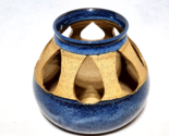 - Indian Native American Pottery Clay Tealight Luminary In Blue Glaze - Signed F&R