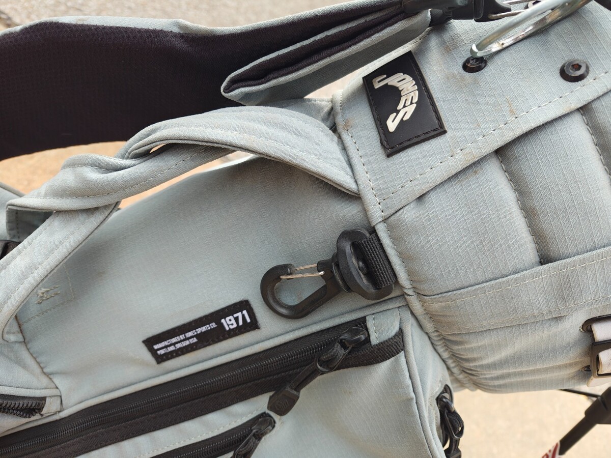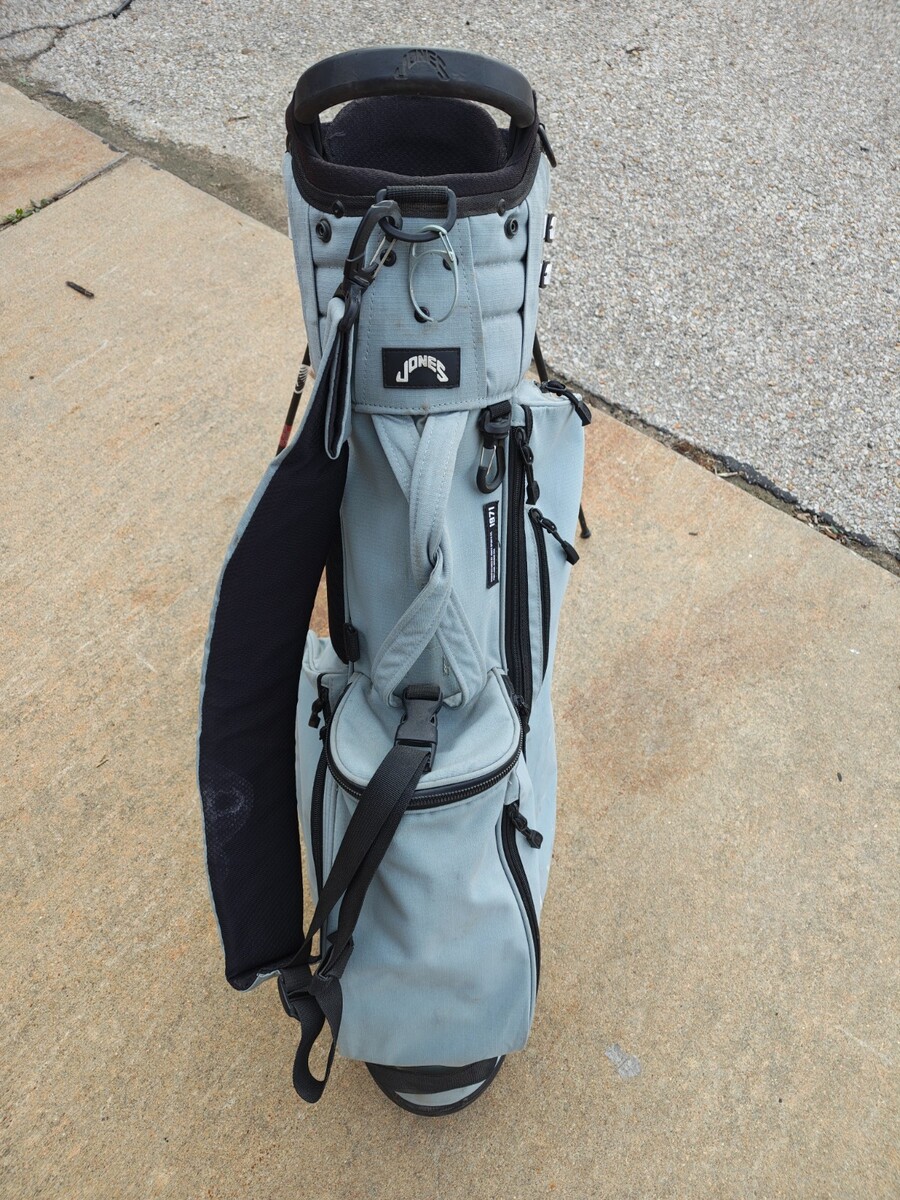 You are bidding on a jones golf bag. The bag shows quite a bit of wear all pockets and zippers in working order. The raincover is not included with the bag.