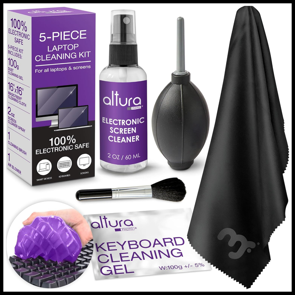 POWERFUL KEYBOARD CLEANER - Effortlessly remove dust and debris from your keyboard and other electronics. The brush, air blower, and gel quickly eliminate dust, while the screen cleaner spray and microfiber cloth provide a flawless finish for your screens.