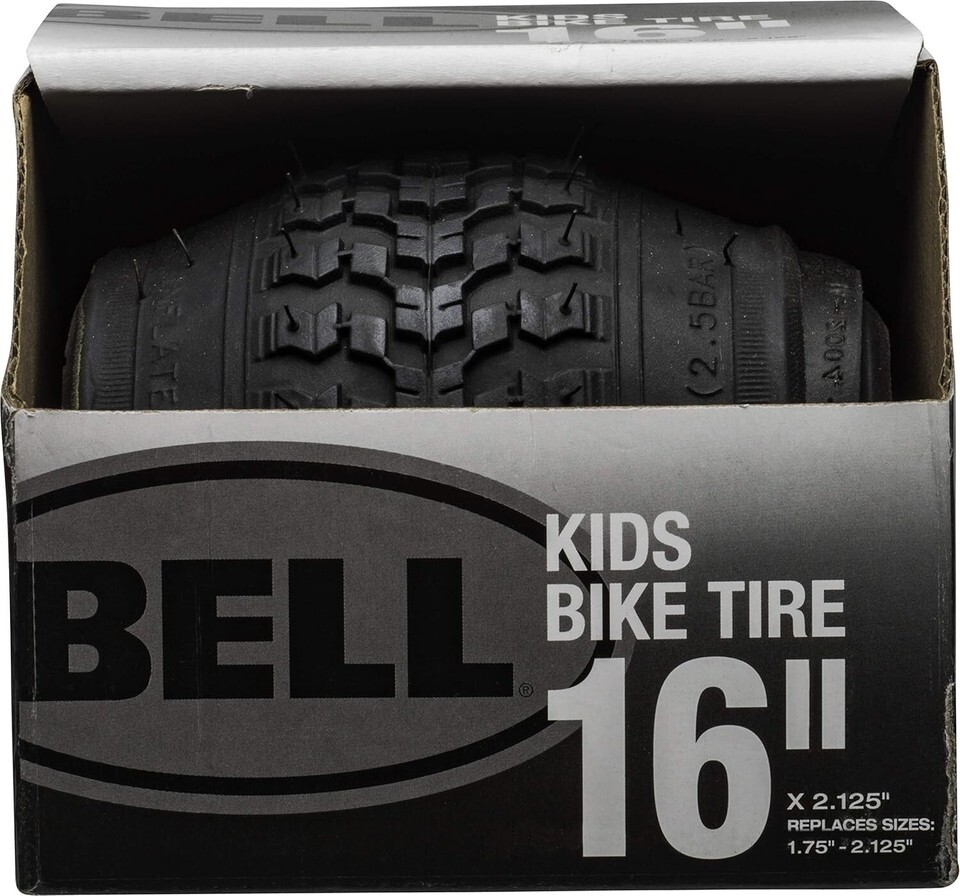 Bell 7091031 Kids Bike Tire 16" Black Knobby Tread Steel Bead 1.75-2.25 in