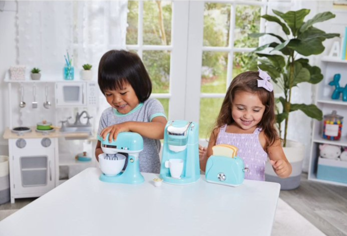 This set encourages kids to explore the kitchen with realistic elements such as a working coffee machine, mixer, and toaster, all of which provide accurate sounds to improve the play experience.