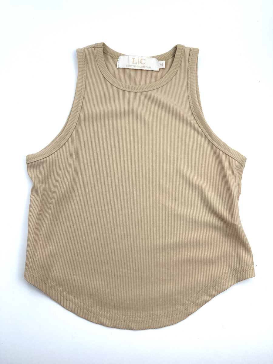 L|C LIZETTE COLLECTION LIGHT BEIGE SAND JUNIOR'S CROPPED TOP TANK SIZE: M