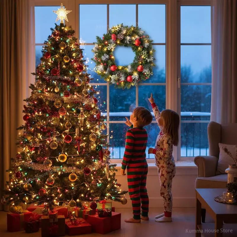 Welcome guests with timeless holiday charm using this LED Christmas Wreath, featuring a lush mix of pine branches, pinecones, red berries, and warm LED lights. Perfect for front doors, walls, and mantels, this 40cm wreath adds a cozy, classic Christmas glow to any space.