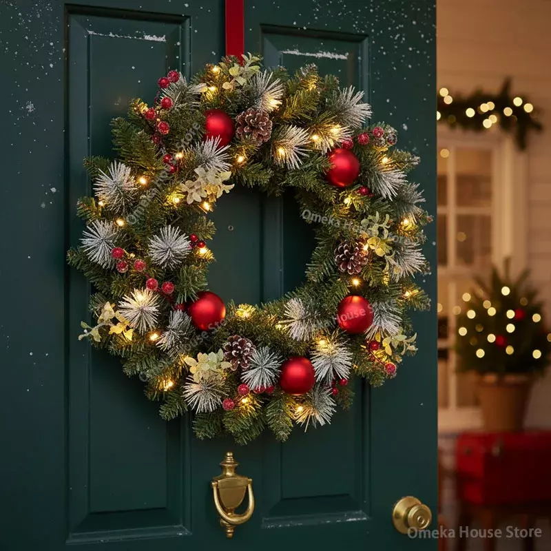 - LED Christmas Wreath – 40cm Pinecone & Red Berry Door Garland