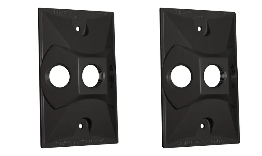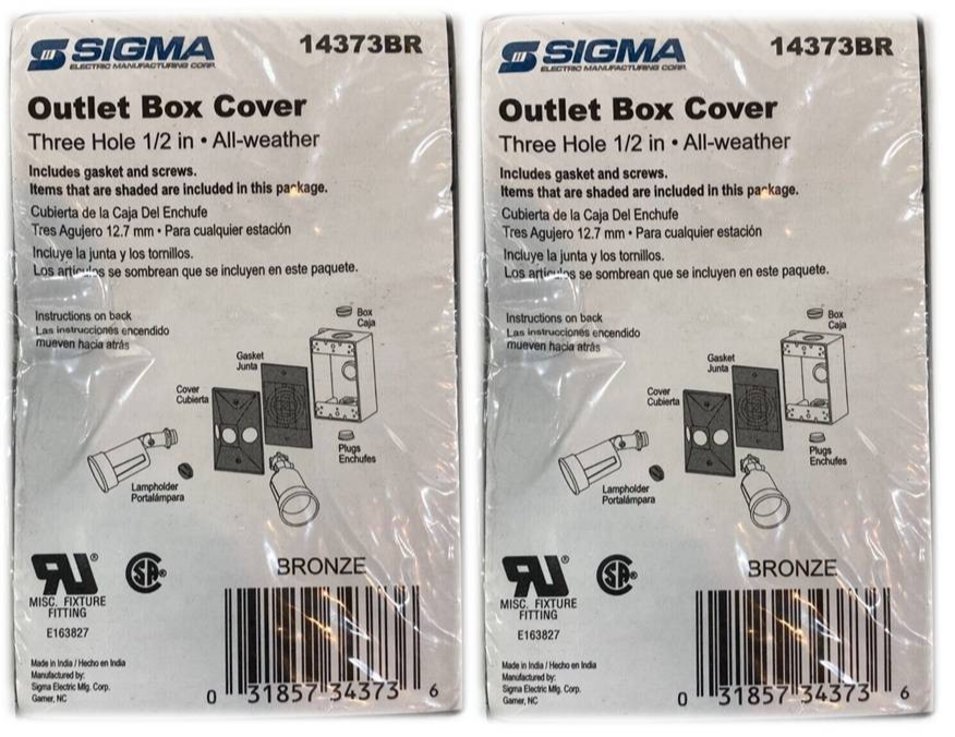 Lampholder Cover w/3 X 1/2'' Holes, 1-Gang, Metal Bronze, Sigma 14373BR (2-PACK) For Wet Locations Material: Metal Die-Cast Category: Weatherproof Sub Category: Cover Type(s): 1-Gang Connection Type(s): ClusterLampholder Three-hole cluster covers are used to provide a mounting location for up to three lampholders to a one-gang weatherproof box. With three 1/2? threaded knockouts Includes gasket, hardware and closure plugs The Sigma 14373BR bronze metal 1-gang lampholder cover is a rugged, weatherproof enclosure designed for outdoor and wet-location lighting installations where moisture resistance and durability are critical. Constructed from die-cast metal with a corrosion-resistant powder-coated bronze finish, it provides a secure, sealed housing for up to three 1/2-inch knockout-mounted lampholders ? ideal for porch lights, pathway fixtures, and exterior wall sconces. The three-hole design allows flexible placement of lighting fixtures while the integrated gasket ensures a watertight seal against rain, snow, and humidity. Meets requirements for wet location installations per NEC standards, making it suitable for uncovered patios, carports, and coastal environments. Features - Die-cast metal construction resists impact, bending, and environmental degradation - Powder-coated bronze finish resists rust, fading, and salt spray ? ideal for coastal and high-humidity areas - Three (3) 1/2-inch knockouts for flexible mounting of surface-mounted or threaded lampholders - Integrated rubber gasket creates a watertight seal when properly installed on weatherproof boxes - Rated for wet locations ? compliant with NEC Article 410 for outdoor and exposed environments - Compact 1-gang rectangular profile fits standard single-gang weatherproof junction boxes - Includes mounting hardware for secure, code-compliant installation - Non-conductive surface ensures safe handling and operation - Designed for use with incandescent, LED, or CFL fixtures ? no electrical rating restrictions - Low-profile depth (0.57 in) minimizes protrusion while maintaining full functionality - Shrinkwrapped for clean, damage-free delivery and storage Specifications - Brand Name: Sigma Electric - Model Name: Sigma 14373BR - Product Type: Lampholder Cover - Material: Die-Cast Metal with Powder-Coated Finish - Color: Bronze - Shape: Rectangle - Number of Gangs: 1 - Dimensions: 2.85 x 4.61 x 0.57 in (W x H x D) - Knockouts: Three (3) ? 1/2 in each - Application: Wet, Damp, and Dry Locations - Certification: NEC Compliant for Wet Locations - Weight: 0.2 lb - Quantity: 1 pc per pack - Packaging: Shrinkwrapped - Country of Origin: United States - UPC: 031857343736 - GTIN: 00031857343736 - Manufacturer: Sigma Electric Product Application The Sigma 14373BR bronze lampholder cover is used by electricians, lighting contractors, and homeowners installing exterior lighting fixtures in exposed or high-moisture environments such as covered porches, garages, entryways, and garden paths. Its robust metal construction and sealed design protect wiring and lampholders from rain, snow, and salt air ? making it ideal for coastal homes, commercial properties, and municipal lighting projects. The three-knockout configuration allows for multi-lamp arrangements without requiring additional boxes or junctions ? streamlining installation and enhancing visual appeal. Professionals choose it for its code compliance, enduring finish, and reliable performance ? delivering the quiet confidence that outdoor lighting remains safe, functional, and aesthetically refined through all seasons.