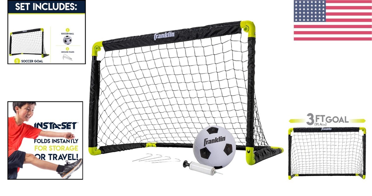 Includes (1) Mini Soccer Goal: 36" x 24" x 24" // (1) Mini Soccer Ball // Inflation Pump with Needle.