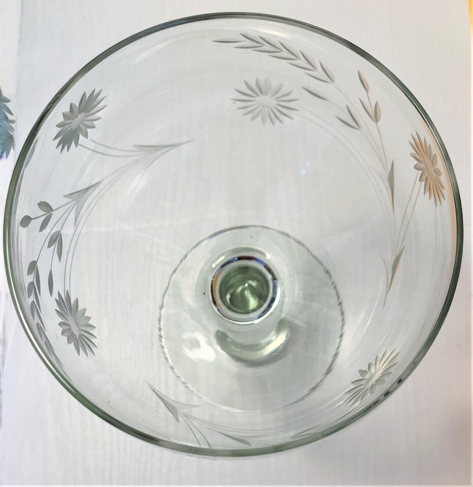 This long stem glass or crystal bowl stands at 11 inches tall. The bowl has pretty flowers etched along the bowl. The bowl can be used as a dish for candies, nuts and other small foods. The item is in very good pre-owned condition. I do have more items listed, and combined shipping is added to cart when you purchase two or more items from my shop.
