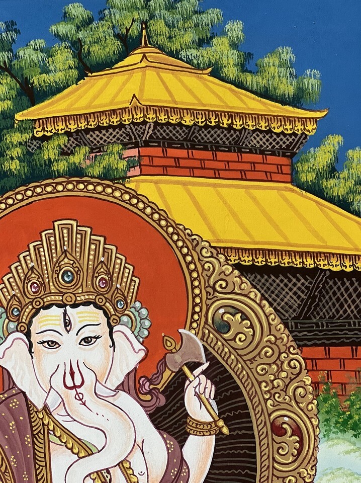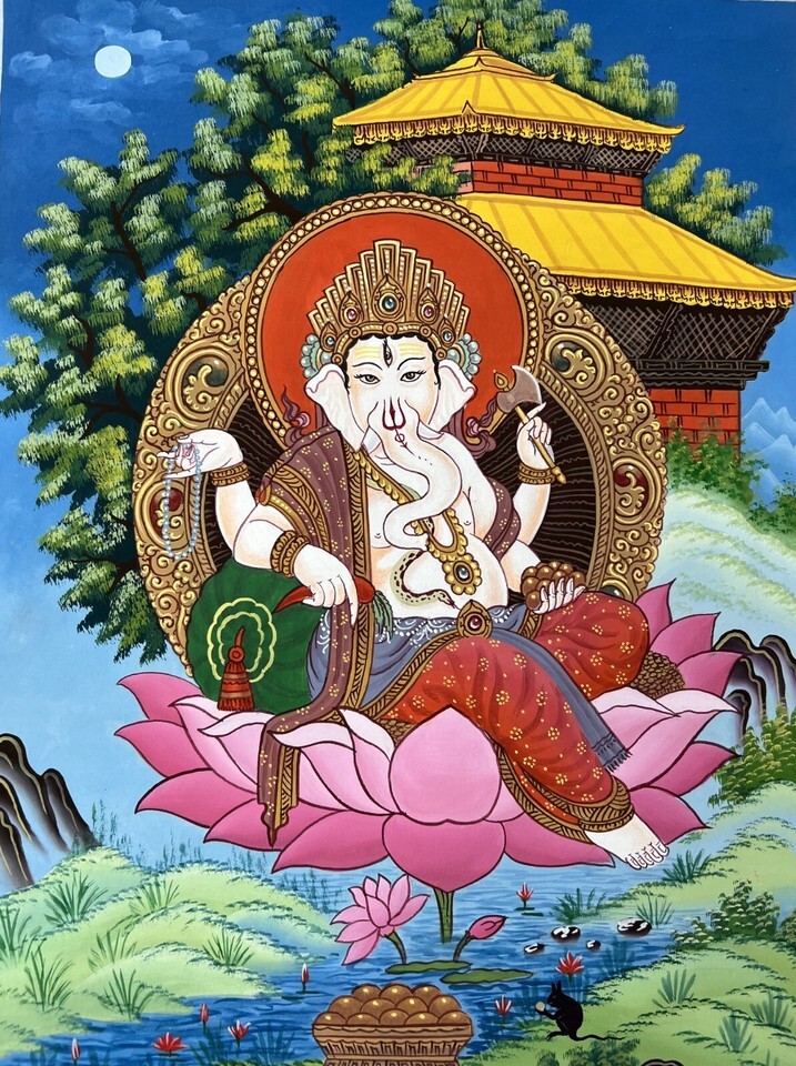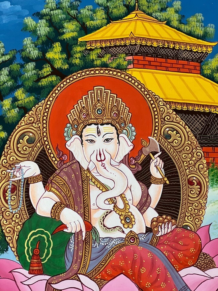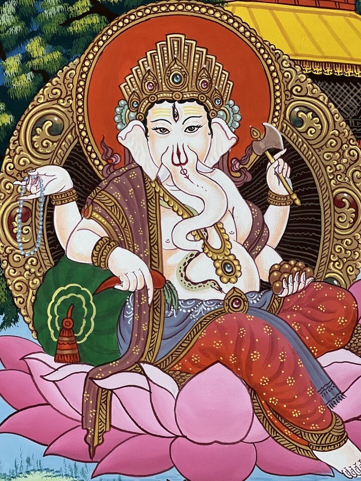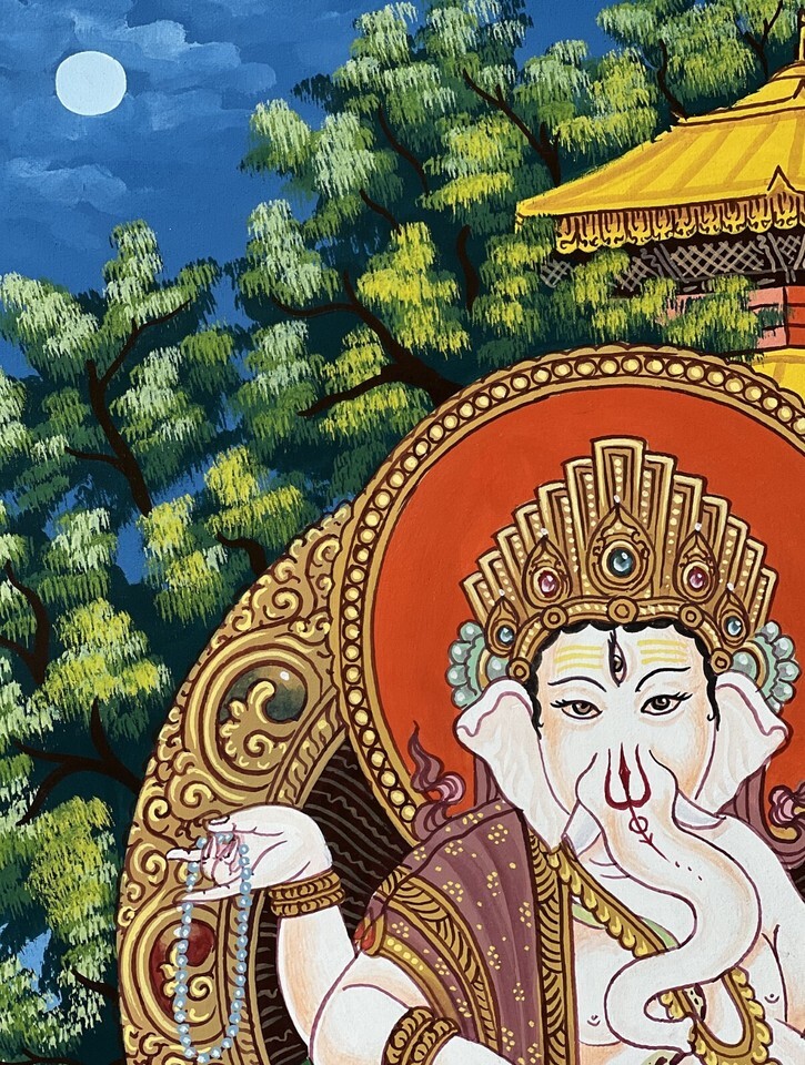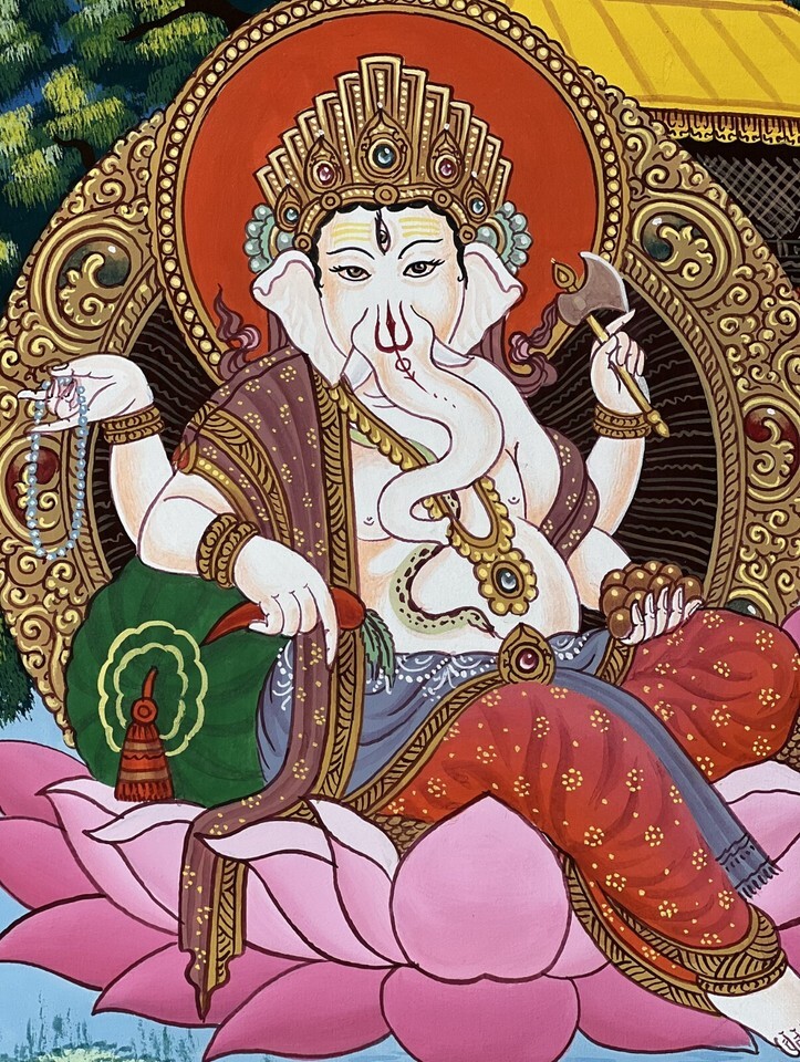 - LORD GANESHA/GANPATI/ VINAYAKA/ REMOVER OF OBSTACLE ORIGINAL THANGKA PAINTING